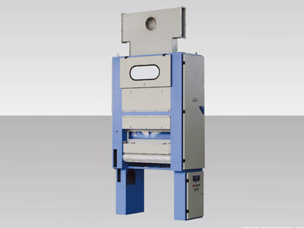 棉箱采用上下棉箱結構,由輸棉風機將清花原棉輸送進入上棉箱,輸棉總管中,設有壓力傳感器,保證落入上棉箱內棉花密度均勻,下棉箱采用風機和通過靜壓擴散而循環吹氣,環循風道內裝有壓力傳感器,根據下棉箱壓力來控制給棉羅拉速度,保證了下棉箱壓力更穩定,輸出棉層一致性及穩定性,主機采用全中文觸摸屏PLC程序控制器智能控制。